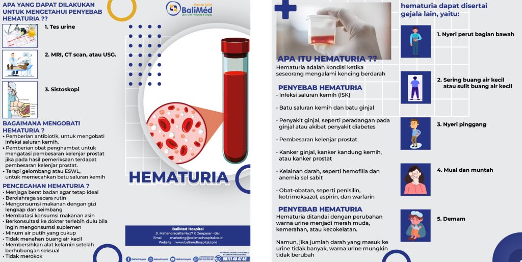 Melihat perubahan warna pada urine bisa menjadi pengalaman yang mengkhawatirkan. Kondisi di mana urine mengandung darah ini disebut sebagai Hematuria. Darah tersebut bisa terlihat jelas secara kasat mata (berwarna merah muda, kemerahan, atau kecokelatan), namun terkadang jumlahnya sangat sedikit sehingga warna urine tidak berubah dan hanya bisa dideteksi melalui pemeriksaan laboratorium.