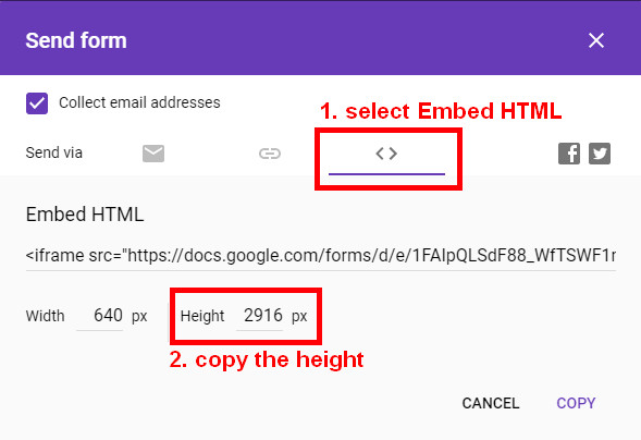 How to get Height?Copy the height value from Embed HTML and paste it on the height text box.